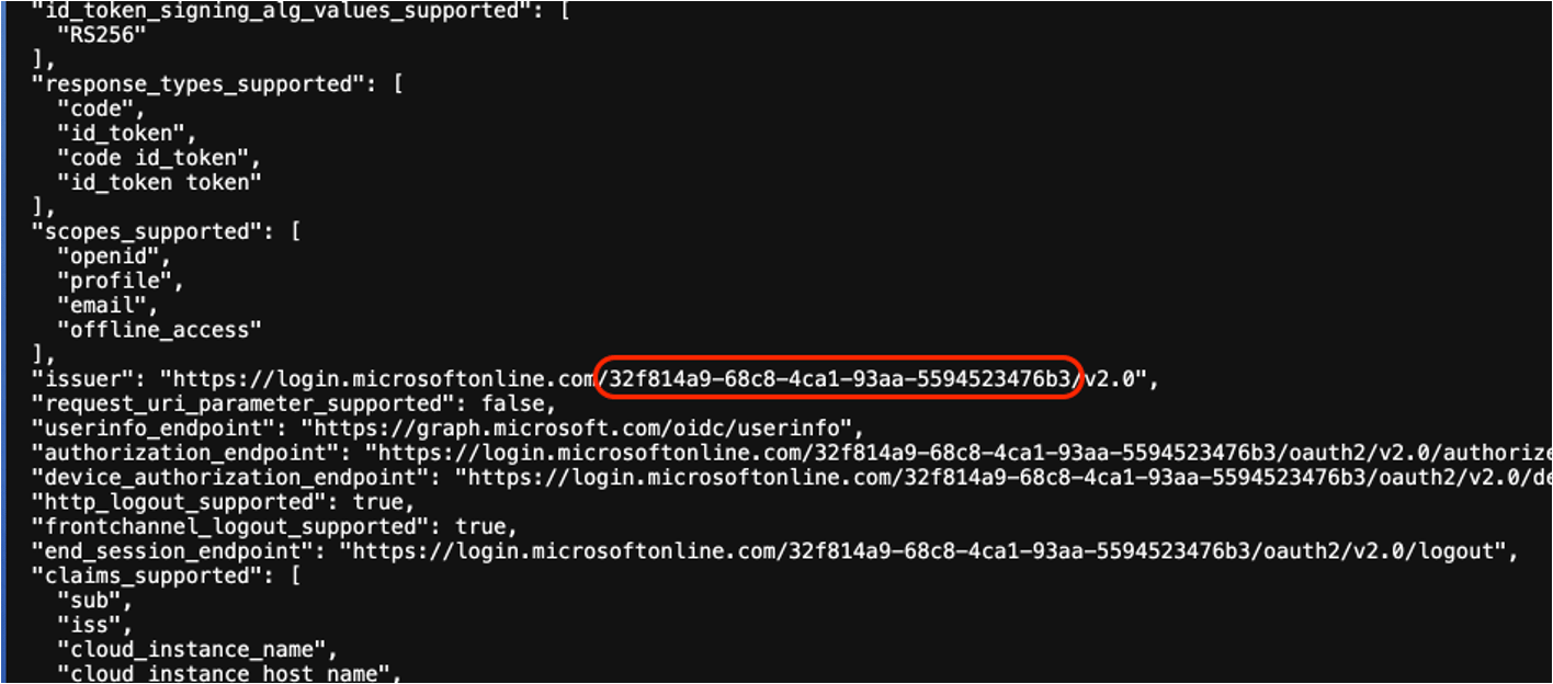 By sending a domain(e.g., zenity.io) to an undocumented public Microsoft API endpoint (https://login.microsoftonline.com/{domain}/v2.0/.well-known/openid-configuration), we’ll get back the tenant ID value which is associated with it (as well as other related metadata)
