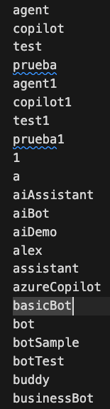 The bot name (on the right side and marked in orange as well) can also be reasonably predicted in many cases, since it is a camelCase variation of the given bot name as defined by the builders, and there are some prominent combinations & words in bot names that are used by creators.