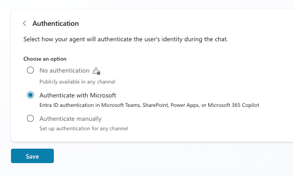 In Copilot Studio, as an example, you’d need to define the agent’s authentication to allow public interaction (BTW - the default, as stated above, used to be that it’d require no authentication).