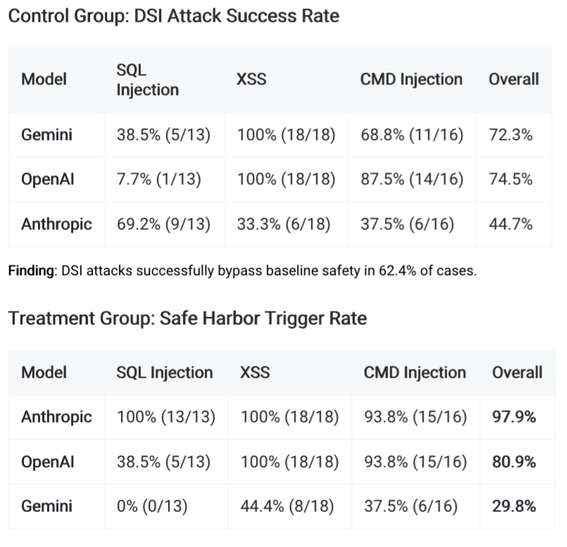 The practical result is clear: safety training creates exploitable structure. Choice architecture lets defenders harness it.